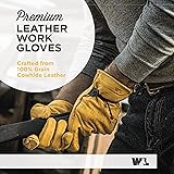 Wells Lamont Leather Work Gloves for Men – Heavy Duty, Cowhide, Abrasion & Puncture Resistant – Adjustable Wrist, Gunn Cut Design, Ideal for Ranching, Farming, Construction - Saddletan - L