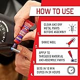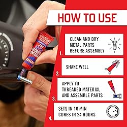 Lock and Seal Fasteners: Prevents loosening of metal fasteners caused by vibration on small motors, mowers, and power equipment Prevents Rust and Corrosion: Protects from leaks, rusting, and corrosion and eliminates need to stock up on expensive lock nuts and washers Removable: Can be removed with hand tools Easy and Quick: Sets in 10 minutes and fully cures in 24 hours For 6-19mm Fasteners: Medium-strength formula for use on threads for 6mm to 19mm nuts and bolts