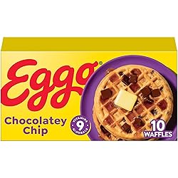 Dig into a classic with the irresistible taste of Eggo Chocolatey Chip waffles; The whole family will love the enticing aroma and sweet flavor Crisp, golden, and delightfully fluffy, these rich waffles have an irresistible homemade flavor and the yummy taste of chocolatey chips Good source of 9 vitamins and minerals; Colors and flavors from natural sources; Kosher Dairy; Contains wheat, soy, milk, and egg ingredients Quick, convenient, and easy to prepare; Just pop these frozen waffles in the toaster or oven for part of a warm, family-favorite breakfast Includes 1, 12.3oz box containing 10 waffles; Packaged for freshness and great taste 10 Vitamins & Minerals An Excellent Source Of Calcium