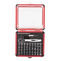 36 bits to accommodate any application QUICK RELEASE extension bar for hard to reach applications Includes: aluminum case, quick release extension bar, ratchet handle, and 36 bits Durable aluminum case for easy, compact storage