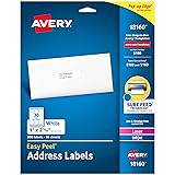Avery Easy Peel Printable Address Labels with Sure Feed, 1" x 2-5/8" Customizable Stickers, White, 300 Blank Mailing Labels, Great for Mailing, Shipping, and More (18160)