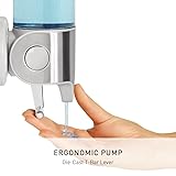 MORE SUDS, LESS CLUTTER - simplehuman's wall mount pumps eliminate bottle clutter and keep everything you need within easy reach. I'M ERGONOMIC - Our durable die-cast t-bar lever makes it easy to dispense just the right amount of soap, shampoo or conditioner. EASY TO INSTALL - Installs easily with double-sided tape. NO MESSY SPILLS - Wide opening makes refills fast, easy, and spill-free. EASY TO CLEAN - Dispenser lifts off wall plate for easy cleaning or refill. CONVENIENT STORAGE HOOKS - Hold a razor, loofah, or other accessories. RUST-PROOF MATERIALS - Durable, long-lasting materials won't rust or discolor.