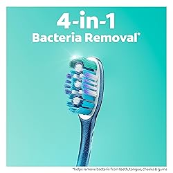 Includes four (4) Colgate 360 Whole Mouth Clean Soft Toothbrushes, Bulk Toothbrush Pack Reach all areas of your mouth comfortably and easily with this adult toothbrush Cleaning bristles and polishing cups help remove more plaque and stains compared to an ordinary adult toothbrush This manual toothbrush reduces 151% more bacteria* (*bacteria that cause bad breath vs. brushing teeth alone with a regular flat-trim toothbrush) Unique cheek and tongue cleaner on the reverse side of this soft toothbrush helps remove odor-causing bacteria