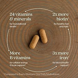 ADVANCED MULTIVITAMIN FOR WOMEN: Complete women’s multivitamin for well-rounded nutrition, crafted with whole-food fermented vitamins the body can recognize as food HIGHER LEVELS OF ESSENTIAL NUTRIENTS: Formula includes Vitamin D3 for Bone and Heart Support; Vitamin C, Vitamin A and Zinc for Immune Support; B Vitamins for Cellular Energy and Beauty Support (including Biotin) EASILY DIGESTIBLE: New Chapter multivitamins are gentle enough to take anytime—even on an empty stomach CLEAN HERBAL BLENDS: 24 vitamins and minerals are expertly blended with superfood botanicals for women, including Ginger, organic Turmeric and organic Chaste Tree berry Made with Certified Organic Vegetables and Herbs, Non-GMO Project Verified, 100% Vegetarian, Certified Kosher, Certified Gluten- Free by NSF, No Artificial Flavors or Colors
