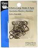 - Dritz extra-large hooks & eyes are sew-on fasteners for use on a variety of garments and accessories. They are perfect for holding finished edges of fabric together on skirts, pants, coats, blouses and more. Use on DIY and sewing projects or store-bought clothing that needs to be reinforced with a fastener. Machine washable and dryable, rustproof. This package contains 3 sets of extra-large antique brass hooks & eyes.