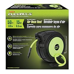 Flexzilla Retractable Enclosed Plastic Air Hose Reel, 3/8 in. x 50 ft., Heavy Duty, Lightweight, Hybrid, ZillaGreen - L8250FZ