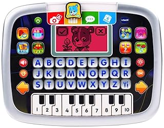 This fun tablet for toddlers features a light-up display with four different screen colors Eight learning activities with progressive learning levels makes this tablet a great toy for two year olds Cody the Smart Cub takes your child on an adventure with vivid animations and sound effects, introducing counting, words, letters, basic math and music Volume control, durable design and automatic shut off make his role-play, toddler tablet great for portable learning anywhere Intended for ages 2-5 years. Requires 2 AA batteries. Batteries included for demo purposes only. New batteries recommended for regular use