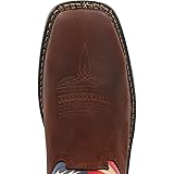 - Having distressed full-grain brown leather positioned along the collar, pull straps and foot of these Rebel by Durango Western boots contrasts nicely with the man-made flag shaft. The square-toe boots have an almost worn-in look, which allows them have a more stylish appearance than a traditional pair of work boots. A double row of welt stitching ensures that the footwear holds together nicely. The steel toe (compliant with the ASTM F2413 Protective Toe Classification) is extremely beneficial to have in these pull-on boots, because it will shield your feet from feeling the full impact of heavy items that drop unexpectedly. The interior of these men's 11 ; Western boots has been fully lined; you will appreciate how lightweight, breathable and soft the material is. The removable footbed supplies tremendous cushioning for the bottoms of your feet. Then there is the tempered steel shank that has been constructed into the base; it provides optimal steadiness and supports the arches of your feet terrifically well. The midsole alleviates the heaviness of your steps and provides additional cushioning, which allows you to wear these men's boots comfortably throughout the entire day. As a whole, the rubber outsole is very flexible, lightweight and extremely durable; underneath, the flag graphics provide a cool visual effect. When you pull on these Rebel by Durango men's Western steel-toe boots, you'll receive fantastic protection for your feet, while being able to enjoy the footwear's fine appearance and comfortable fit. You can always benefit from having a new pair of work boots, get yours today!