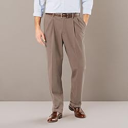 - Best-in-class men's pleated pants that come with dress pant details like a crisp cuffed hem. These men's pleated khaki pants are constructed with comfort in mind. They feature added stretch for performance, a super soft hand and a comfort waistband, which offers up to 2 inch. The perfect men's pleated dress pants to add to your wardrobe.