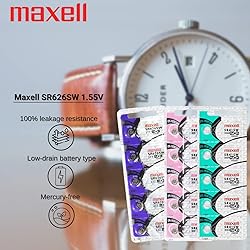Maxell 377 SR626SW 0% Mercury 1.55 Nominal Voltage, Silver Oxide Watch Battery Lightweight, high-energy density, and stable discharge battery Leakage Resistance Design Blister Package: Original Hologram Packaging Used as a power source for quartz watches, medical devices, keyless remote entry systems, and more