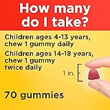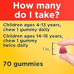 Nutritional support supplement: contains one 70 count bottle of Nature Made Kids First Multivitamin with Omega-3 Gummies, 30 mg EPA and DHA This daily multivitamin gummy for kids offers a tasty option for daily nutritional support This fruit-flavored multivitamin for kids is formulated with essential immune support nutrients and contains heart-healthy EPA and DHA Omega-3s Children ages 4-13 chew one of these Nature Made multi gummies daily, and children ages 14-18 chew one of these kids multivitamin with Omega 3 gummies twice daily These gluten free kids multivitamin gummies contain no artificial flavors, no synthetic dyes, no high fructose corn syrup, and no artificial sweeteners United States Pharmacopeia (USP) Verified These statements have not been evaluated by the Food and Drug Administration; this product is not intended to diagnose, treat, cure, or prevent any disease
