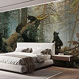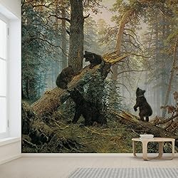 wall26 - Morning in a Pine Forest (Bears Playing on a Fallen Tree) by Ivan Shishkin - Russian Realist Painter - Landscape Artist - Peel and Stick Large Wall Mural, Removable Wallpaper - 66x96 inches