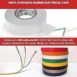 - Color Electrical TapeProduct DescriptionT.R.U. Electrical Tape is 19mm wide Plasticized PVC film with an aggressive rubber based adhesive in OSHA colors; rolls are individually cello-wrapped and labeled. It is a UL/CSA 1.5 in. listed core. Flame retardant and cold resistant.11 Colors available Black - Yellow - Green - Orange - Purple - White - Red - Blue - Gray - Brown - PinkRainbow Pack 3/4 in. includesWhite - Black - Yellow - Orange - Red - Blue - Green - Purple - Gray - PinkRainbow Pack 2 in. IncludesBlack - Yellow - Green - Orange - White - Red - Blue - Gray.ApplicationsQuick identification of electrical phases - Circuits - Feeders and branches.Properties Adhesive: Rubber resin Carrier/Backing: plasticized polyvinyl chloride (PVC) film Thickness: 7 mils (carrier + adhesive) Adhesion: 13 oz/in (to stainless steel test panel) Tensile: 16 lb/in Elongation: 200% Application temperature range: up to 176 F Dielectrical Breakdown: 6KV Certifications: UL/CSA listed 3" neutral core/cartonNote: Sizes will be the tape industry standard metric sizes, ex. 12mm for every 1/2 inch of nominal value tape width (Rolls are give or take 5% wider or narrower than the nominal size).