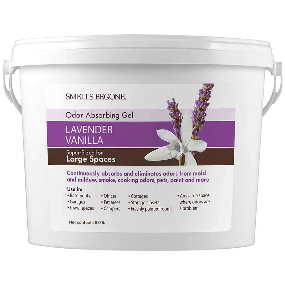 SMELLS BEGONE 15oz Gel Odor Eliminator - Absorb & Remove Tough Odors in Pet Areas, Bathrooms, Basements, Garage, Cars, RVs & Boats - Eliminate Odors Quickly (2-Pack, Lavender Vanilla)