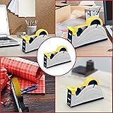 The desktop tape dispenser is made from industrial-grade steel and accommodates one single rolls of 1-inch tape up to 3 inches wide, with a 3-inch diameter core. It supports an outer roll diameter of up to 5 inches, making it versatile for various tape needs. It features a durable and rust-proof serrated blade capable of cutting through tape up to 3 mils thick, designed with a wider cutting angle to enhance precision and efficiency while ensuring user safety with a protective blade cover. The dispenser is equipped with a sturdy, weighted rubber-lined base that can be removed for mounting directly to a surface or left on for added stability and surface protection. This multi-purpose desktop tape dispenser is suitable for various tasks such as sealing boxes, envelopes, and letters, or for decorative purposes, making it a practical tool for offices, homes, and warehouses.