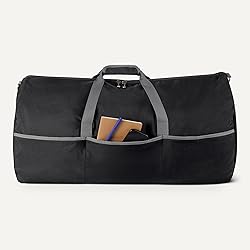 MASSIVE CAPACITY & STORAGE: Measuring 32.4"L x 16.9"W x 16.9"H (9,254 cubic inches or 150 Liters), this extra-large duffle bag offers impressive storage space, suitable for accommodating extensive gear, multiple outfits, or bulky items while keeping everything organized. VERSATILE FUNCTIONALITY: Transform this duffle bag to meet your needs - from a travel companion for extended trips to a storage solution for home organization, camping gear, or sports equipment. When not in use, it conveniently folds flat for compact storage. PROFESSIONAL STRENGTH & DURABLE CONSTRUCTION: Engineered with 100% nylon material, this bag combines lightweight portability with exceptional durability, capable of supporting up to 50 pounds without compromising structural integrity. SMART ORGANIZATION SYSTEM: Keep essentials organized with strategically designed interior and exterior pockets. Interior zippered compartments secure valuable items like electronics and travel documents, while exterior pockets provide quick access to frequently needed belongings. ERGONOMIC DESIGN & PORTABILITY: Thoughtfully designed with reinforced top loop handles and a heavy-duty zipper closure system, ensuring comfortable carrying and reliable security. The collapsible design allows for easy storage in tight spaces. PREVIOUSLY AMAZON BASICS: Previously Amazon Basics, now Amazon Essentials. Packaging may vary but item and quality remain the same.