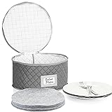 PROTECT YOUR DINNERWARE - Salat plate storage case holds a set of 12 plates. Set includes 12 felt plate separators for protection against chipping and scratching. QUALITY MATERIAL - Plate case measures 10" W x 6" H. Made from Premium Polyester with non-slip texture and soft quilted for added protection. Includes label holder to easily identify contents and zippered closures to protect from dust. VERSATILITY - Great for nesting and storing dishes in small storage spaces, cabinets, RV, moving, transporting, and camping. This dish storage container will make a perfect home for Christmas dishes, Thanksgiving plates, or even paper plate holders for a party. MULTI-PURPOSE - Use on dining storage - dinnerware - bowls - bakeware - glass - ceramic - etc LONG LASTING AND WASHABLE - Hand wash with warm soapy water and lay flat to dry or wipe with wet cloth as needed.