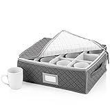 - CONTENT: Quilted case is 16" W X 13" D X 6" H. It can hold 12 coffee cups, tea cups or mugs up to 6" tall and 4" wide, and includes removable dividers for protection against chipping and scratching.PREMIUM MATERIAL: Made from premium polyester with non-slip texture with label holder to easily identify contents and zippered closure to keep your fine china away from dust, breakage and pests.CARE: Wipe with wet cloth as needed.