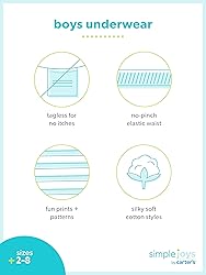 8-Pack Value: Each pack includes 8 pairs of underwear, offering excellent value and ensuring your child has plenty of options for everyday wear Mix of Boxers and Underwear: Choose between a set of boxers and traditional underwear, providing variety and flexibility to suit different preferences Soft and Comfortable Fabric: Made with soft fabric that feels gentle on your child's skin, offering all-day comfort for active little ones Elastic Waistband: Features a stretchy, no-roll elastic waistband that provides a secure fit while remaining comfortable and non-restrictive Tagless Design: Designed with a tagless construction to prevent irritation and discomfort, keeping your child feeling comfortable Machine Washable: Easy to care for—simply toss them in the wash for a quick and convenient clean, ensuring they stay fresh and durable after repeated use