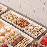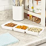 US Acrylic Avant White Plastic Divided Serving Trays (Set of 4) 15” x 5” | Narrow Reusable 3-Section Party Platters | Serve Appetizers, Fruit, Veggies, & Desserts | BPA-Free & Made in USA