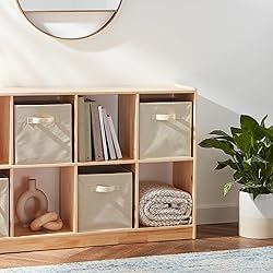 Amazon Basics Collapsible Fabric Storage Cubes Organizer with Handles, Sturdy, Beige, 10.5-x-10.5-x-11-inch, Pack of 6