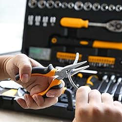 HIGH QUALITY&STANDARDS:Forged from high-quality steel and finished in high-polish chrome,strength, durability, anti-corrosion protection.All the tools meet or exceed ANSI critical standards COMPLETE VARIETIES: Contains tools needed for most small repairs and basic DIY projects around the house.Perfect for Handyman’s, repairmen, construction workers, mechanics, body shops etc. also a great tool set to have at home, garage and the workshop INCLUDES: Comprehensive assortment of professional-grade wrenches, ratchets, a complete range of SAE and metric-sized sockets and screwdriver bits, hammer, tape measure, pliers,also includes 1/4 inch and 3/8inch socket set, ensure accurate size. And the 72-tooth ratchet easily shift to change direction by flick of 5-degree switch.Variety of 1/4-inch screwdriver bits: Phillips, slotted, square, star and pozi EASY TO CARRY&STORAGE:Housed in a handy blow-molded case for easy tool storage and portability. Its sturdy interior and organizer keeps tools in place DESIGN OF GREAT ORGINALITY:Black case makes it dirt-resistant.Diamond shape design makes it unique and fashion .Case size: 15.35"*11.02"*3.54".Net Weight 7.60 lb
