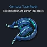 Kids Headphones - noot products K11 Foldable Stereo Tangle-Free 3.5mm Jack Wired Cord On-Ear Headset for Children/Teens/Boys/Girls/Smartphones/School/Kindle/Airplane Travel/Plane/Tablet (Navy/Teal)