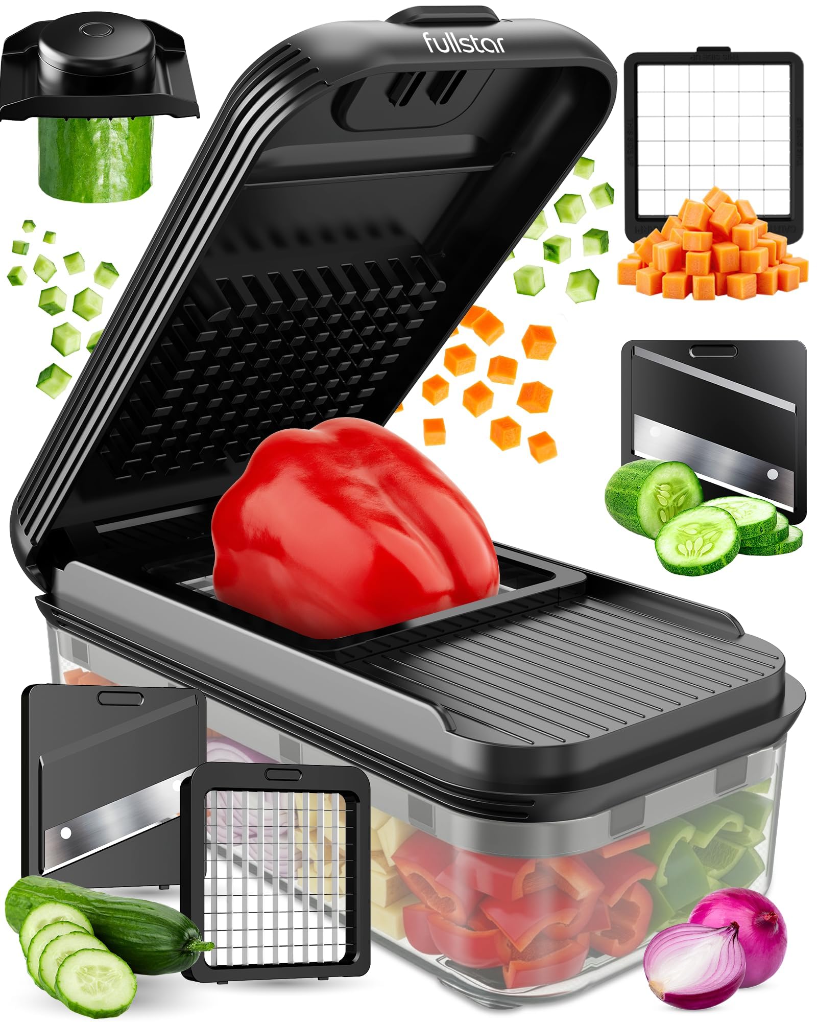 The Original Pro Chopper – TikTok’s favorite veggie slicer and one of the top-rated kitchen gadgets of the season! Simple to use, set up, and clean, this 5-cup, large-capacity chopper saves significant time and energy by chopping in just 30 seconds—a task that takes 3 minutes manually. It’s a useful gift for anyone who wants to cook smarter, faster, and easier. Easy Meal Prep with Rust-Resistant Blades – Perfect for those who want to eat healthier but don’t have time to spare. Dice potatoes, tomatoes, cucumbers, carrots and more with heavy-duty, rust-resistant 420 stainless steel blades that stay razor sharp. A thoughtful cooking gift and practical kitchen essential for everyday use. 5-Star Design for Everyday Cooking – Built for comfort and precision. The soft-grip TPU handle offers better control, while the non-skid rubber base keeps this BPA-free food chopper stable on any surface. Its built-in catch tray keeps counters clean — making it a perfect house warming gift! Dishwasher Safe (Top-Rack Approved) – Done prepping? Just toss it on the top rack of your dishwasher — no scrubbing required. A clever and convenient choice for white elephant gifts, birthdays, or holiday kitchen gifts that actually get used. The Perfect Kitchen Gift – Whether you're a novice cook or a seasoned pro, the Fullstar Food Chopper makes meal prep fast, safe, and fun. Ideal for low-carb, plant-based, and family-friendly meals, it’s one of the best gift ideas for anyone who loves time-saving kitchen gadgets. From family dinners to holiday feasts, prep has never been easier!