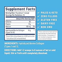 - Collagen is the most abundant protein in your body and essential for the health of your bones, joints, skin, hair, and nails. Certified Grass-Fed: We source our Collagen from 100% happy, healthy, pasture-raised cows. Just One Ingredient: Our Grass-Fed Bovine Collagen powder is just that—Collagen. Free from dairy, GMOs, gluten, and soy. Flavorless. Odorless. Tasteless. Unflavored Collagen seamlessly mixes into your favorite beverage. It's made to dissolve quickly for a clump-free, flavorless experience. CONTAINS NO ADDED: Milk, shellfish, tree nuts, wheat, peanuts, or soy. Made on equipment that also processes milk, eggs, fish, tree nuts, and soy.