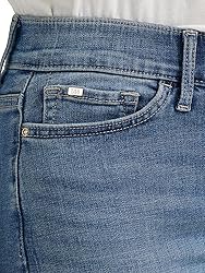 Mid rise, regular fit Featuring flexible non-binding waistband 5 pocket denim with back pocket detail stitching Rise: 9.5 Inches, Leg Opening: 18.25 Inches, Inseams: Short: 30 Inches, Medium: 32 Inches, Long: 34 Inches Product Measurements were taken using size 10 medium. Please note that Measurements may vary by size
