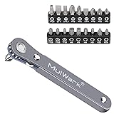 MULWARK 20pc 1/4 Ultra Low Profile Mini Ratchet Wrench Close Quarters Screwdriver Set with High Torque - Right Angle EDC Tool with 90 Degree Mini Offset Reversible Drive Handle & Multi Hex Bits Set