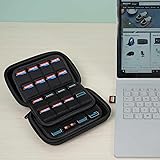 Designed specifically for memory cards, this updated case provides a compact and organised way to store up to 63 SD cards (SD / SDHC / SDXC) or PS Vita game cartridges securely in one place. HARD and DURABLE: Features a rigid EVA hard shell with a zippered closure to protect your memory cards from drops, pressure, and everyday travel damage - far more protective than flimsy plastic cases. LARGE STORAGE: Holds up to 63 SD cards, 4 Micro SD cards, or alternatively up to 56 Nintendo Switch game cartridges. Elastic stitched slots keep each card firmly in place and easy to identify. EASY TO USE: Flexible elastic slots allow cards to be inserted and removed smoothly without bending or forcing - ideal for adults and kids, and safer than rigid plastic holders that can crack or snap. Case only. SD cards, Micro SD cards, Nintendo Switch game cartridges, and consoles are not included.