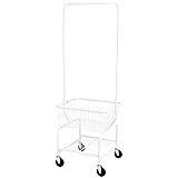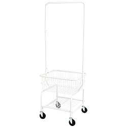 - Amazon Basics Laundry Hamper Basket Butler Cart with Wheels and Hanging Rack, White