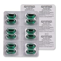 - Compare to Vicks NyQuil Cold & Flu active ingredients. Get powerful nighttime relief with Amazon Basic Care Nite Time Cold & Flu Relief Softgels. This cold and flu medicine helps relieve major flu symptoms so you can rest. This product contains a pain reliever, fever reducer, cough suppressant and antihistamine for multi-symptom relief of aches, fever, sore throat, sneezing, runny nose and cough. This product is gluten free and alcohol free.