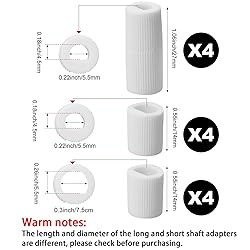 - 4 Pack white control knobs replacement with 12 adapters for oven/ stove/ range Features: Made of quality material ABS plastic, these knobs and adapters have been well inspected and test by manufacturer. Work with: Works with many brand stove, range and oven, suitable for RVs, campers, camping appliances, etc. Specifications: Material: ABS plastic Quantity: 16 pieces Color: white Knob diameter: approx. 1.57 inch/ 40 mm Knob height: 1.1 inch/ 28 mm Insert knob diameter: 0.43 inch/ 11 mm Inner diameter of adapters: short small hole adapter and Long small hole adapter: approx. 0.22 inch/5.5mm, 0.18inch/4.5mm short big hole adapter:approx. 0.3 inch/7.5mm,0.26inch/6.5mm Height of adapter: short adapter: approx. 0.55 inch/14 mm. Long adapter: approx. 1.06 inch/27 mm Package includes: 4 x white control knob 4 x Long small hole adapters 4 x Short small hole adapters and 4 x Short big hole adapters Warm note: The size of the shaft in your stove or oven should match the D posts inside diameter of our control knob, only works under this condition. Please make sure the insert size is suitable for your machine before purchasing. Strengthen the monitoring of testing link to ensure the quality of products, then to send to customers.