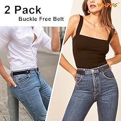 WHIPPY 2 Pack Buckle Free Comfortable Elastic Belt for Women or Men, Buckle-less No Bulge No Hassle Invisible Belts