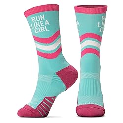KEEP YOUR FEET DRY AND COMFORTABLE! These socks are designed with our RUNTECHNOLOGY blend for performance and comfort. The cushioned footbed helps absorb the impact of running and jumping. These socks also have built in arch support thanks to the unique arch knit pattern which prevents bunching while providing added support. Featuring our ultra-spun moisture wicking polyester, our inspirational athletic socks keep your feet dry and comfortable while running, at the gym, playing sports or loungin HIGH QUALITY, PERFORMANCE SOCKS! These mid-calf socks deliver a secure fit every time you put them on. Our inspirational athletic socks serve as a perfect complement to your sports sneakers, cleats or shoes! The arch compression pads the contours of your feet while providing a comfortable fit and keeping socks in place while living your active lifestyle! The toe ventilation keeps your feed dry and comfortable. Not only fun and fashionable, but functional too! RUN LIKE A GIRL! Let the competition know that they just got passed by a girl in your next race with these inspirational socks, providing wisdom not only for your feet, but for the body and soul. Make both a fashion statement and a statement about what motivates you! SIZING: One Size Fits Most. We recommend these socks for Women's Shoe Size 6-12 and Men's Shoe Size 5-11. DESIGNED BY Gone For a Run – A USA based, family owned and operated business located in Connecticut. We pride ourselves on the integrity and quality of our products and firmly stand behind all that we sell. If you are not 100% satisfied with your purchase, please contact us so we can make it right.