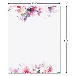 Current Brushed Floral Letter Paper - Spring Stationery Papers With Decorative Flower Border, Printable Holiday, Wedding & Bridal Shower, & Invitation Sheets, Set of 25, 8 1/2" x 11"
