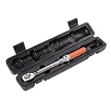 HEAVY-DUTY PERFORMANCE: Handle a wide range of torque applications with precision using the 20-150 in.-lb/2.5-15 Nm range of this heavy-duty torque wrench DURABLE CONSTRUCTION: Engineered with a hardened treated Cr-V steel alloy ratchet head, this torque wrench provides long-lasting durability with resistance to rust and corrosion EASY TO READ SCALE: This adjustable torque wrench features a high contrast, dual range scale pre-calibrated to an accuracy of ± 4% for reliable and precise adjustments CONVENIENT STORAGE: Comes with a sturdy plastic case, making it easy to store and transport your 1/4 inch torque wrench safely and conveniently USER-FRIENDLY DESIGN: This tork wrench offers easy operation; unlock before adjusting torque value and lock after for stable use; adjust to lowest value and loosen locking ring post-use