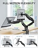 Compatible with Wide Screens - To ensure compatibility with the dual monitor mount, your each monitor must meet three conditions at the same time: First, computer screens size range: 13 to 32 inches. Second, screen weight range: 4.4 to 19.8 lbs. Third, the back of the monitor screen must have VESA mounting holes with a pitch of 75x75mm or 100x100mm. Regarding the compatibility with desks - Your desk must meet three conditions at the same time: First, desk material: Only wooden desks are recommended, plastic or glass desks cannot be used. Second, desk thickness range: 0.59" - 3.54". Third, the bottom of the desk should not have any cross beams or panels, as this will interfere with installation. We recommend carefully checking that your desk and monitors meets all above conditions before purchasing. Dual C-Clamp Hold - Worried your dual monitors might wobble or slip? Our upgraded base uses a larger platform plus a dual C-clamp structure to lock the dual monitor arm firmly to your desk. Each arm safely keeps your screens steady while you type, click and game—no shaking, no sliding, just a clean and secure setup you can trust every day. It also provides Grommet Mounting installation choice, both options ensure stable and secure fixation for your 0.59" - 3.54" desk. Full-Motion Adjustment For Comfortable View - Pull the screen closer when you’re deep in a spreadsheet, push it back to watch videos, or rotate to portrait for coding — moving everything smoothly with just one hand. The monitor stand offers +85°/-50° tilt, ±90° swivel and 360° rotation. Raise your monitor up to 16.2″ to support a healthy sitting posture. Whether you’re working from home, gaming through the night, or switching between video calls and documents, getting the screens to your natural line of sight helps relieve neck, shoulder and back strain so you can stay focused longer with less fatigue. Keep Your Desk Organized: By lifting both screens off the desktop, this dual monitor stand opens up valuable space for your keyboard, notebook, docking station or a simple, clutter-free work area. Built-in cable management guides wires along the arms, keeping cords out of sight and out of the way. Enjoy a tidy, modern workstation that looks as good as it feels to use.