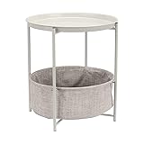 - Amazon Basics Round Storage End Table, Side Table with Cloth Basket - White/Heather Gray, 19 x 18 x 18 Inches