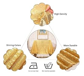 Material: High-density sequins are sew on the fabric,the edges have been sewn all the way around so that you do not have to worry about the fabric fraying and the sequins from falling. Our sequins are polished, and they are even more dazzling under the light. Tablecloth Size: 60" x 102". Please measure the table size(length, width) before buying. For example: Tablecloth Length = Table Length + 16"~24"(40~60cm), Tablecloth Width = Table Width + 16"~24"(40~60cm), each end drops approximately 8"~12"(20~30cm). If you want the effect of the tablecloth falling to the ground: Tablecloth Length = Table Length + Table Height*2, Tablecloth Width = Table Width + Table Height*2. Use: You can use it for any occasion, especially for Valentine's Day, weddings, birthday parties, graduation ceremonies, family dinners, anniversaries, afternoon tea, Christmas, Halloween, baby shower. Let this elegant tablecloth company you through the warm moments of your life. Style: As shown in the photo, this tablecloth is sparkling and will be a highlight of your party. Light up your party with sequin tablecloths, let them be the guiding stars for your guests to follow. We also have sequined photo background curtain that are paired with the tablecloth to create enhanced visuals.