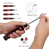 73-piece ratchet wrench and screwdriver set for easily tightening and loosening fasteners; the precision screwdriver bits are non-magnetic, which is suitable for small electronic instruments like watches, smartphones, glasses, and more; the other bits are magnetic, which is suitable for repairing popular electric appliances, like air conditioners, washing machines, refrigerators, TVs, and more 3 driver settings: clockwise and counter-clockwise ratcheting and fixed in the locked position; driver’s free-spinning base allows for turning the handle while easily maintaining consistent pressure Made of chrome vanadium steel that has been heat treated for hardness; corrosion-resistant finish for added strength; non-slip handle provides a comfortable, secure grip Plastic storage case included with dedicated space for the driver, sockets, and bits Measures 7.91 x 4.57 x 1.42 inches Tips: Do not use precision screwdriver bits on oversized screws that need large torque force; precision screwdriver bits are only suitable for small electronic devices