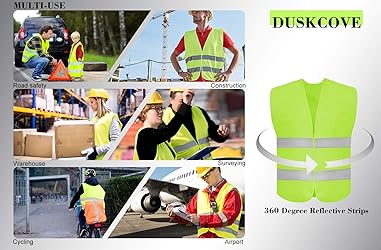 Mesh Imported ONE SIZE FITS MOST: Buy for the whole team. The XXL size fits almost all adult men and women and is affordably priced HIGH VISIBILITY & REFLECTIVITY: Fluorescent neon yellow vest with reflective silver strips that wrap the entire safety vest. Visible from up to 700 feet, it provides 360° protection and makes you stand out in the dark LIGHTWEIGHT & BREATHABLE: This high visibility vest is made of lightweight and comfortable 100% polyester breathable fabric MULTIPURPOSE: The safety vest design allows it to be used by construction workers, warehouse staff, traffic control or volunteers. Wear the reflective vest when you are running, cycling, working with traffic, dog walking, and for roadside emergencies EASY ON AND OFF: With the Velcro patch, this hi vis vest is easy on and off. It's so comfortable to wear that you'll even forget you're wearing it