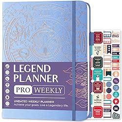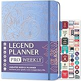 Legend Planner PRO – Deluxe Weekly & Monthly Life Planner to Increase Productivity and Hit Your Goals. Time Management Organizer Notebook – Undated – 7 x 10" Hardcover + Stickers – Periwinkle