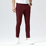 Plaid&Plain Men's Slim Fit Khaki Pants Stretch Cropped Chino Skinny Pants