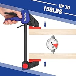 Solid Construction: Reinforced nylon body and high-quality hardened steel bars provide great impact resistance, which is totally able to withstand the heavy use expected on construction sites. Clamp & Spreader: The unique quick-change button design allows the f clamp to be a spreader as well. Just press the red button to take the jaw off and then reverse it before putting it back in, you will get the spreader you need. Powerful Clamping Force: With up to 150 lbs of squeezing force and a metal ratcheting mechanism, WORKPRO bar clamp offers a decent choice for woodworking or other household repairs. Its lightweight, yet sturdy, and is capable of holding pressure for extended periods. Eye for Details: Non-marring removable and replaceable pads feature flexible material and non-slip texture, which enhances the overall clamping force. Quick-release latch allows you to adjust and lock the wood clamps simply and quickly. Somewhat surprising, the ergonomically-designed handle and dipping plastic on the quick-release latch are both for customers' comfort. 6” & 12” Clamps Set: The set contains 4 pieces 6” bar clamps and 2 pieces 12” bar clamps. The 6" clamps can be set to spreaders of sizes up to 11-9/64” and the 12” clamp is also a spreader with sizes up to 17-21/64”.