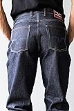 - Denim in its purest form.MADE IN THE USA - Imported FabricDETAILS: Mid-Low Rise, Relaxed Upper Thigh, Wide-Boot, Hand-Sanded Integrated Knife Pocket, Off-White Stitch DetailingCONTENT: 100% CottonCONSTRUCTION: 3x1 Right Hand Twill. Ring Spun. 13.75oz. denim.Our jeans have the longevity and durability you demand because we only source ring-spun denim. Ring-spun denim has greater tensile/tear strength in the fabric form than open-end yarn found in other brands. Thus our jeans last two to three times longer.SIZING: 29" 30" 31" 32" 33" 34" 35" 36" 38"*Buy your typical Kimes Ranch size*INSEAMS: 32" 34" 36" 38" SIZE CHARTABOUT RAW DENIMThis denim is raw and unwashed. It has been treated with natural indigo. During the first few wears, the excess dye may be transferred onto skin, upholstery, garments, shoes, and your saddle.Raw denim will shrink. As a rule of thumb, our raw denim will shrink roughly 1/2 an inch in the Waist and 1 to 1 1/2 inches in length. When buying raw denim, we recommend buying your same Kimes Ranch size, to allow for the perfect fit once the raw denim is washed.Please use caution when wearing this product to avoid an unwanted color transfer that is out of our control.