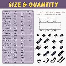 1, 【 WHat You Get 】 ----- In this kit, We carefully select the combination series for you to meet your needs for IC chip work.In total 169Pcs You will get LM324,LM358,LM386,LM393,NE5532,NE555,PC817,ULN2003,ULN2803,ICL7660S,JRC4558,LM339,TDA2030AN,TDA2822D,PT2399,UC3842AN,UC3843AN,DIP4 socket, DIP8 socket, DIP14 socket, DIP16 socket, DIP18 socket. So Many different Types popular IC Chip Assortment Kit can meet all your Daily needs. 2, 【 Product Features】 -----Integrated circuits have the advantages of small size, light weight, small solder joints, long life, high reliability, and good performance. At the same time, the cost is low and it is convenient for mass production. Using integrated circuits to assemble electronic equipment, the assembly density can be increased by tens to thousands of times than that of transistors. The stable working time of the equipment can also be greatly improved. 3, 【 The Most Popular Fully Types Integrated Circuit Chip Assortment Kit 】 ------ We have chosen a variety of useful IC types for daily assembly, such as: precision timers, dual operational amplifiers, audio amplifiers, Darlington arrays, quad operational amplifiers, etc. It is suitable for single power supply with a wide range of power supply voltages, and is also used in dual power supply operating modes. 4,【 Wide Applications】----- low power consumption, strong anti-interference, small and flexible, strong processing capacity, green and environmental protection, suitable for most terminal industries, such as industrial control products, automotive electronics, medical equipment, security monitoring, household Electrical appliances, student experiments and communication equipment. 5, 【 With Anti-static Plastic Box】 ------ For your convenience storage and organization, we also equip you with Container Box, store commonly used IC kits according to label instructions. Its application range includes sensor amplifiers, DC gain templates and all other occasions where operational amplifiers can be powered by a single power supply.