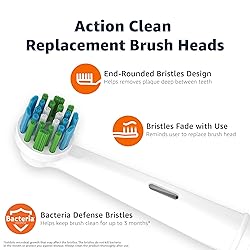 FITS MOST ORAL-B TOOTHBRUSHES: Compatible with most Oral-B electric toothbrush models, excluding iO Rechargeable and Gum Care Battery handles. Ideal for those seeking toothbrush head replacements COST-EFFECTIVE PACK: Includes 5 electric toothbrush replacement heads, allowing you to have a spare on hand for uninterrupted dental care EASY VOICE REORDERING: Reorder your electric toothbrush replacement heads easily with Alexa voice shopping by saying, "Alexa, reorder Amazon Basics Brush Heads" to keep your routine smooth TRY IT: If you like Oral-B Cross Precision Clean Replacement Brush Heads, we invite you to try Amazon Basics Action Clean Replacement Brush Heads DEPENDABLE CLEANING PERFORMANCE: Amazon Basics Action Clean toothbrush replacement heads offer reliable oral care, making them a staple in health savings eligible products for optimal hygiene